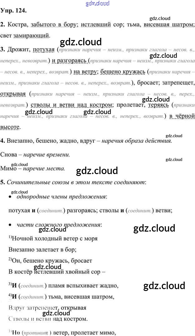 Ответ на задание 124 Учебник Русский язык за 7 (седьмой) класс Быстрова, Кибирева, Гостева, Воителева Инновационная школа 2019 Часть 1, 2