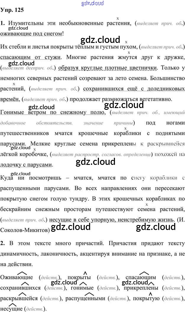 Ответ на задание 125 Учебник Русский язык за 7 (седьмой) класс Быстрова, Кибирева, Гостева, Воителева Инновационная школа 2019 Часть 1, 2