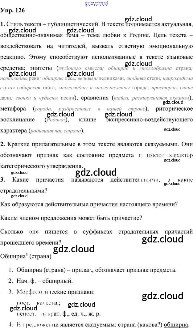 Ответ на задание 126 Учебник Русский язык за 7 (седьмой) класс Быстрова, Кибирева, Гостева, Воителева Инновационная школа 2019 Часть 1, 2