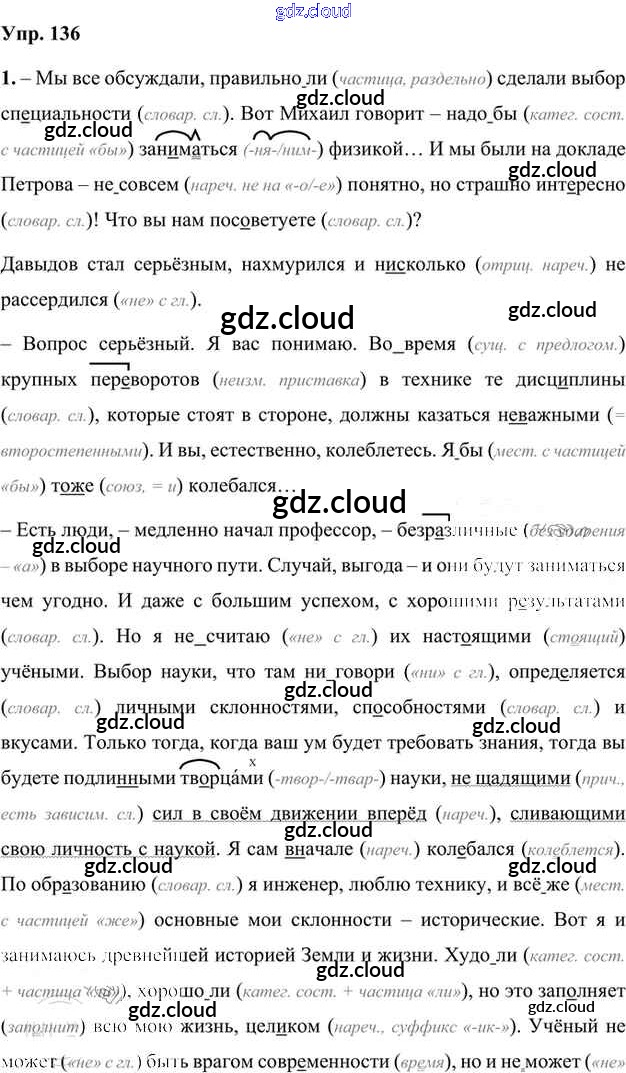 Ответ на задание 136 Учебник Русский язык за 7 (седьмой) класс Быстрова, Кибирева, Гостева, Воителева Инновационная школа 2019 Часть 1, 2