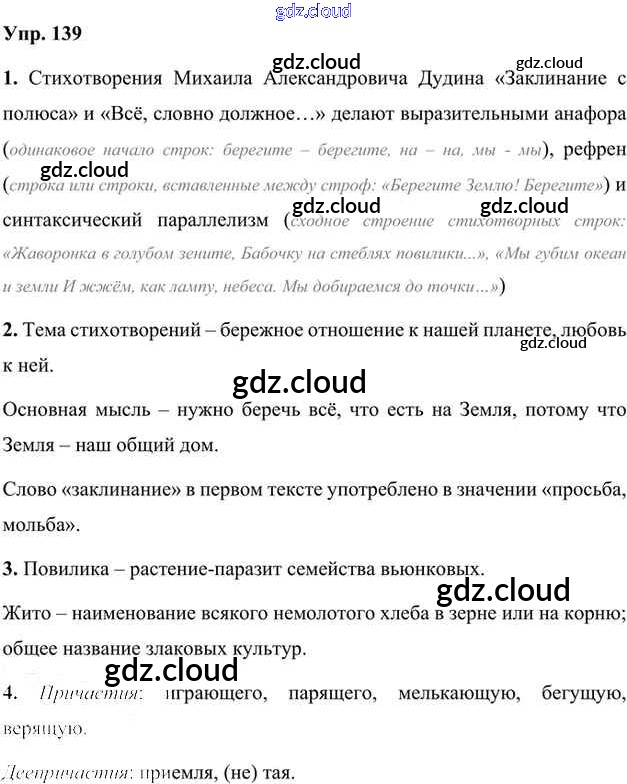 Ответ на задание 139 Учебник Русский язык за 7 (седьмой) класс Быстрова, Кибирева, Гостева, Воителева Инновационная школа 2019 Часть 1, 2