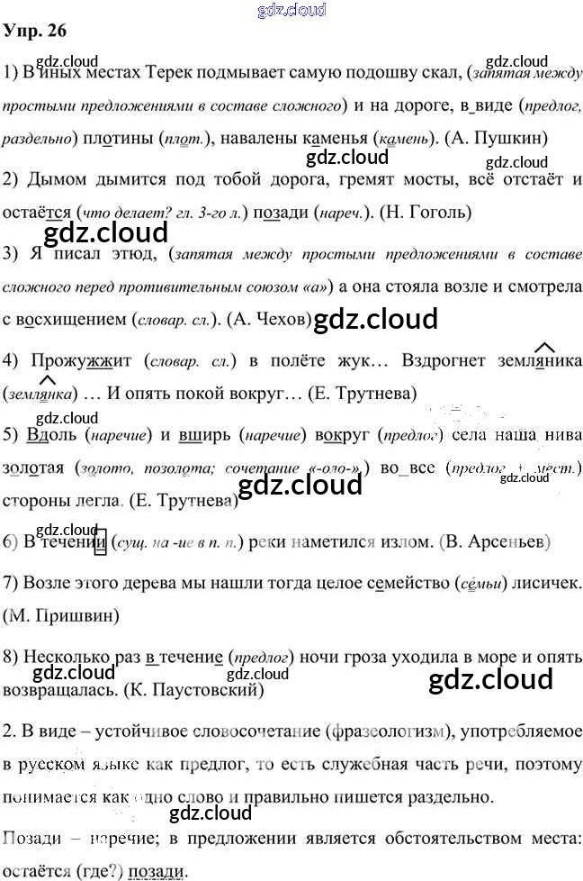 Ответ на задание 26 Учебник Русский язык за 7 (седьмой) класс Быстрова, Кибирева, Гостева, Воителева Инновационная школа 2019 Часть 1, 2