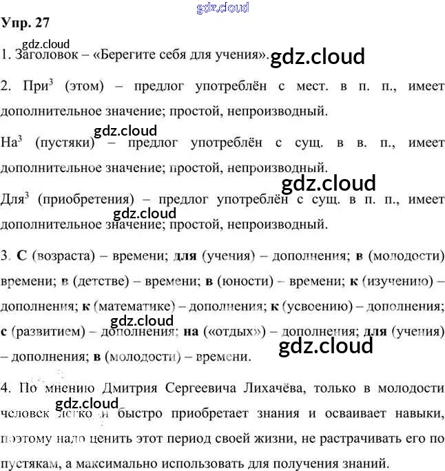Ответ на задание 27 Учебник Русский язык за 7 (седьмой) класс Быстрова, Кибирева, Гостева, Воителева Инновационная школа 2019 Часть 1, 2