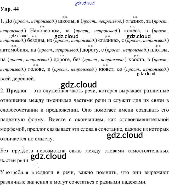 Ответ на задание 44 Учебник Русский язык за 7 (седьмой) класс Быстрова, Кибирева, Гостева, Воителева Инновационная школа 2019 Часть 1, 2
