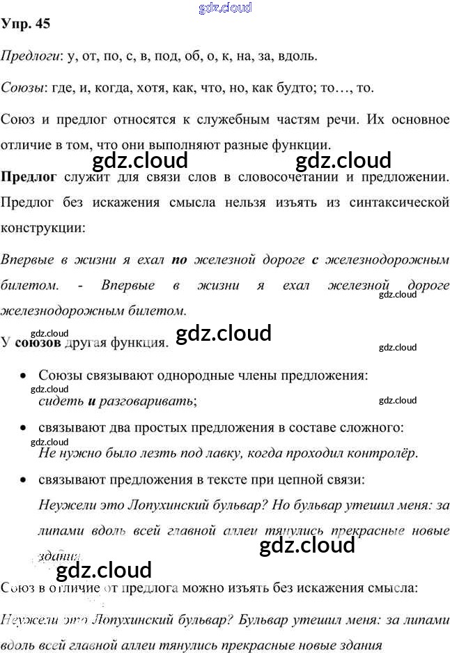 Ответ на задание 45 Учебник Русский язык  за 7 (седьмой) класс Быстрова, Кибирева, Гостева, Воителева Инновационная школа  2019 Часть 1, 2