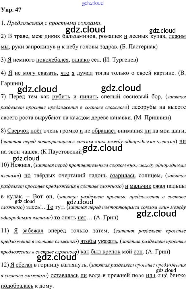 Ответ на задание 47 Учебник Русский язык  за 7 (седьмой) класс Быстрова, Кибирева, Гостева, Воителева Инновационная школа  2019 Часть 1, 2