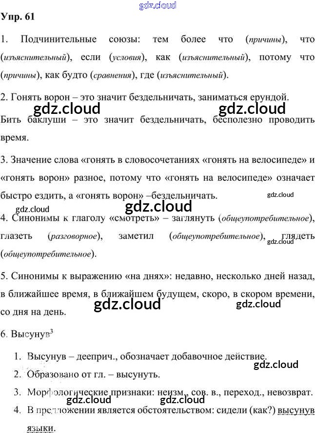 Ответ на задание 61 Учебник Русский язык за 7 (седьмой) класс Быстрова, Кибирева, Гостева, Воителева Инновационная школа 2019 Часть 1, 2
