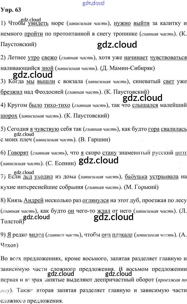 Ответ на задание 63 Учебник Русский язык за 7 (седьмой) класс Быстрова, Кибирева, Гостева, Воителева Инновационная школа 2019 Часть 1, 2