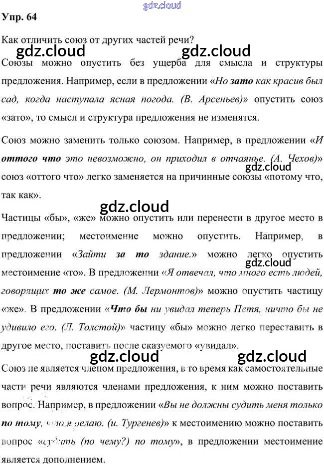 Ответ на задание 64 Учебник Русский язык за 7 (седьмой) класс Быстрова, Кибирева, Гостева, Воителева Инновационная школа 2019 Часть 1, 2
