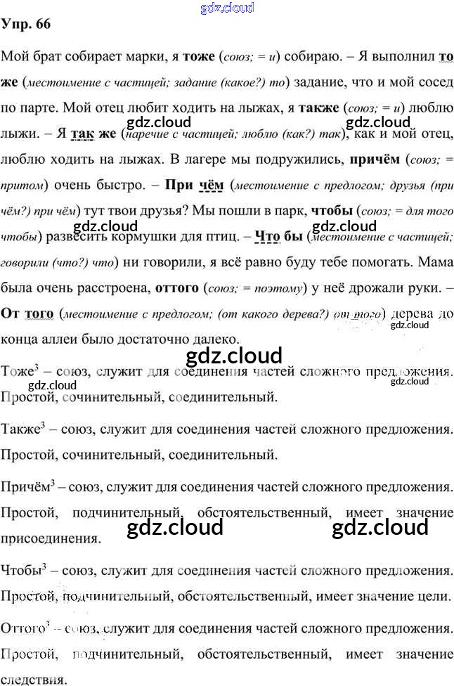 Ответ на задание 66 Учебник Русский язык за 7 (седьмой) класс Быстрова, Кибирева, Гостева, Воителева Инновационная школа 2019 Часть 1, 2