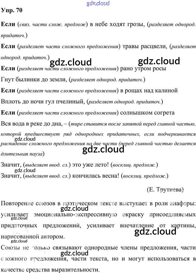 Ответ на задание 70 Учебник Русский язык за 7 (седьмой) класс Быстрова, Кибирева, Гостева, Воителева Инновационная школа 2019 Часть 1, 2