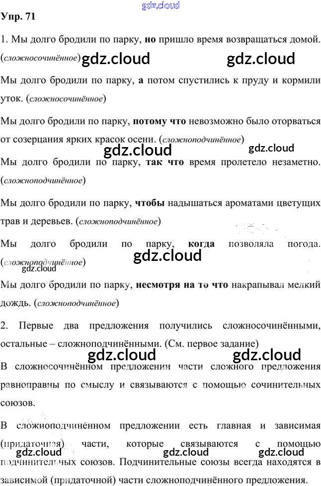 Ответ на задание 71 Учебник Русский язык за 7 (седьмой) класс Быстрова, Кибирева, Гостева, Воителева Инновационная школа 2019 Часть 1, 2