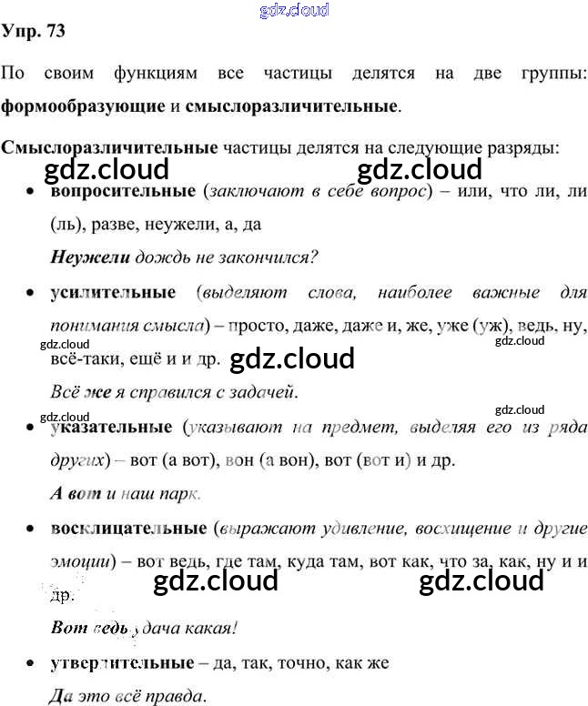 Ответ на задание 73 Учебник Русский язык за 7 (седьмой) класс Быстрова, Кибирева, Гостева, Воителева Инновационная школа 2019 Часть 1, 2
