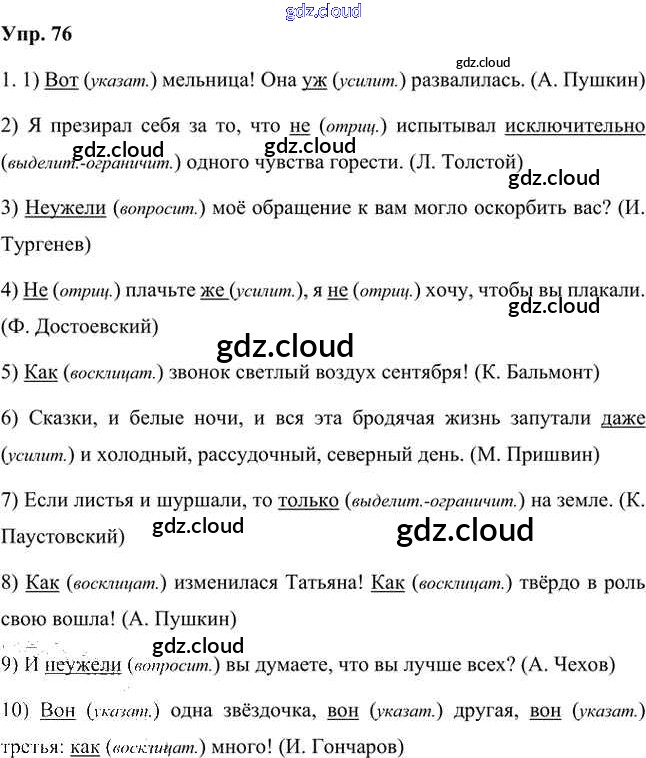 Ответ на задание 76 Учебник Русский язык за 7 (седьмой) класс Быстрова, Кибирева, Гостева, Воителева Инновационная школа 2019 Часть 1, 2