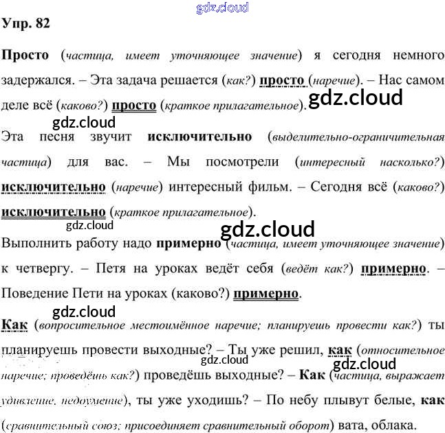 Ответ на задание 82 Учебник Русский язык за 7 (седьмой) класс Быстрова, Кибирева, Гостева, Воителева Инновационная школа 2019 Часть 1, 2