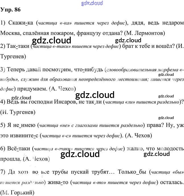 Ответ на задание 86 Учебник Русский язык за 7 (седьмой) класс Быстрова, Кибирева, Гостева, Воителева Инновационная школа 2019 Часть 1, 2