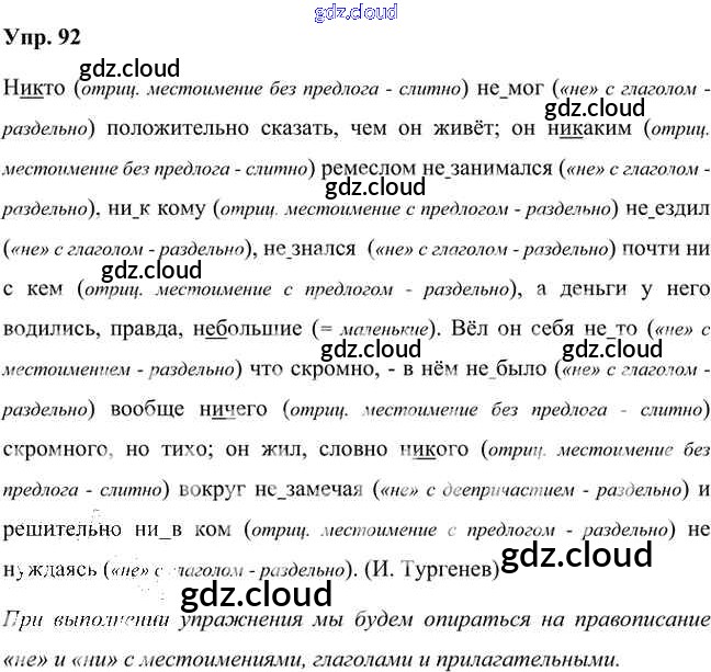 Ответ на задание 92 Учебник Русский язык за 7 (седьмой) класс Быстрова, Кибирева, Гостева, Воителева Инновационная школа 2019 Часть 1, 2