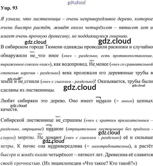 Ответ на задание 93 Учебник Русский язык за 7 (седьмой) класс Быстрова, Кибирева, Гостева, Воителева Инновационная школа 2019 Часть 1, 2