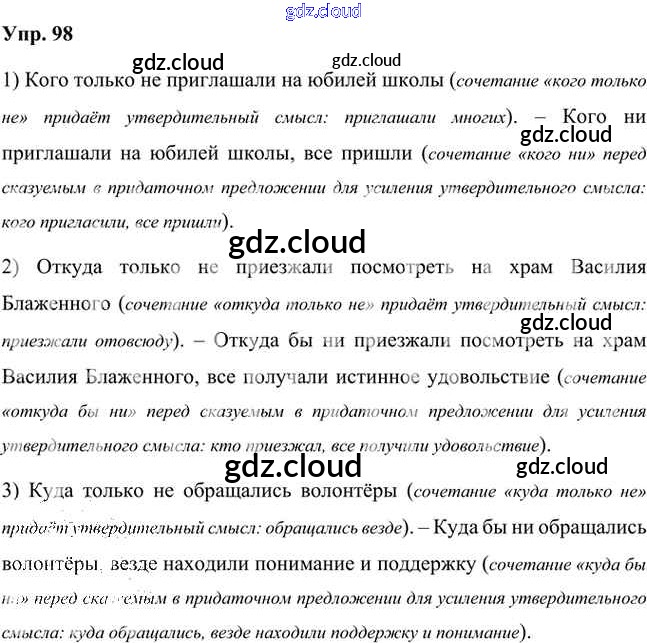 Ответ на задание 98 Учебник Русский язык за 7 (седьмой) класс Быстрова, Кибирева, Гостева, Воителева Инновационная школа 2019 Часть 1, 2