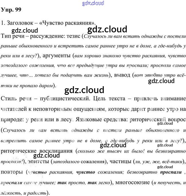 Ответ на задание 99 Учебник Русский язык за 7 (седьмой) класс Быстрова, Кибирева, Гостева, Воителева Инновационная школа 2019 Часть 1, 2