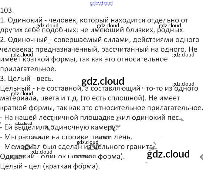 Ответ на задание 103 Учебник Русский язык за 7 (седьмой) класс Львова, Львов УМК 2012 Часть 1, 2, 3