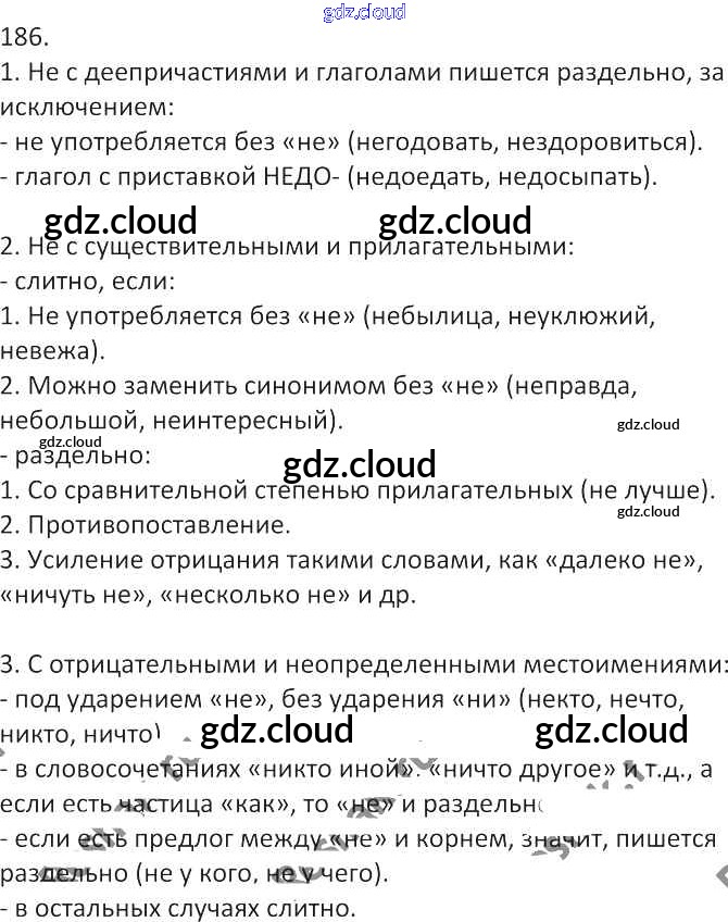 Ответ на задание 186 Учебник Русский язык за 7 (седьмой) класс Львова, Львов УМК 2012 Часть 1, 2, 3
