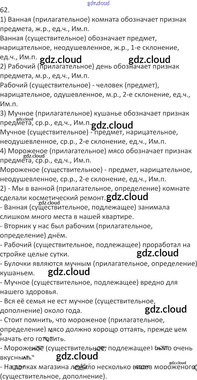 Ответ на задание 62 Учебник Русский язык за 7 (седьмой) класс Львова, Львов УМК 2012 Часть 1, 2, 3 ФГОС онлайн и без номера телефона.