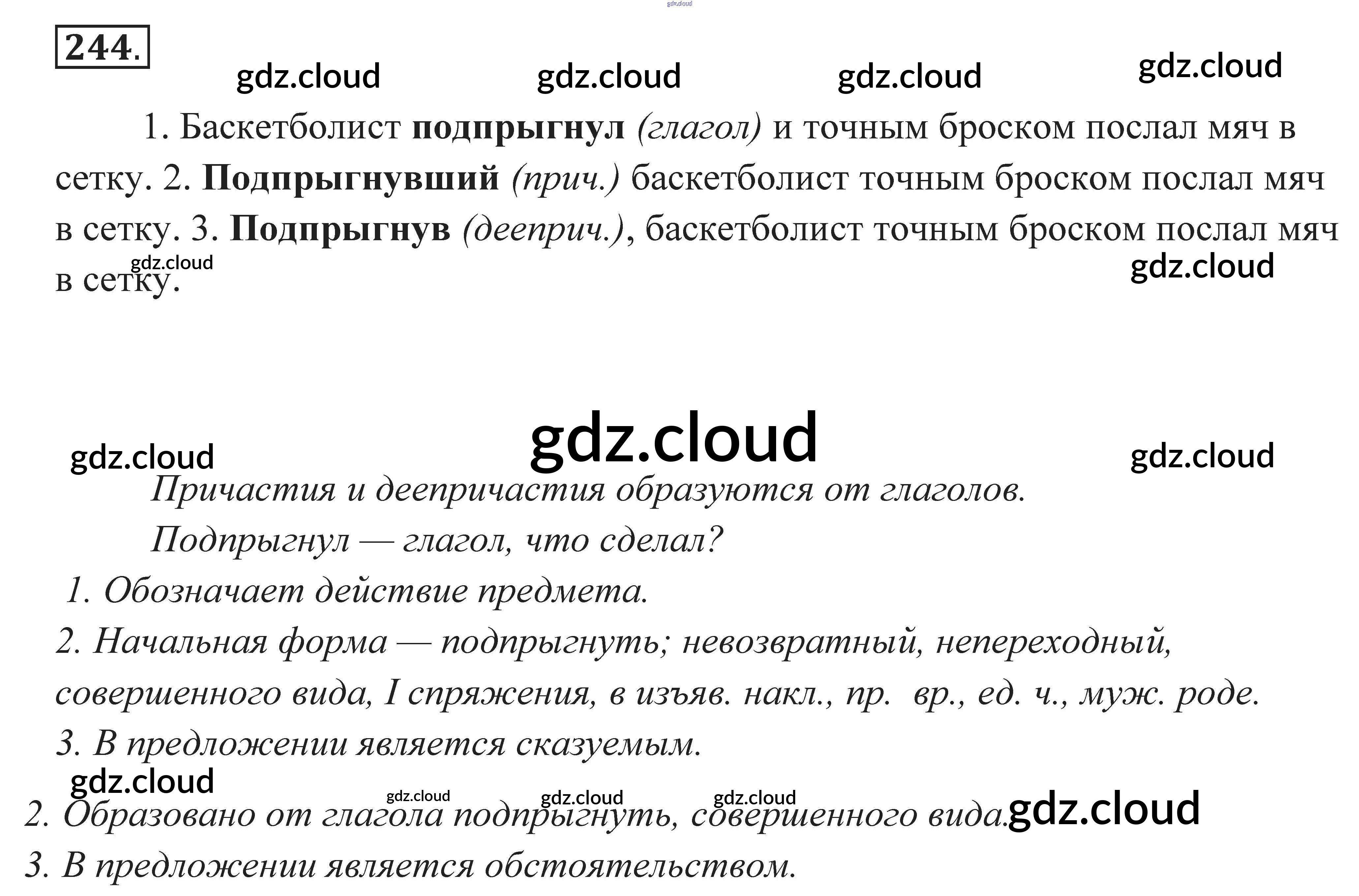 Ответ на задание 244 Практика Русский язык за 7 (седьмой) класс Пименова, Еремеева, Купалова 2016 ФГОС онлайн и без номера телефона.