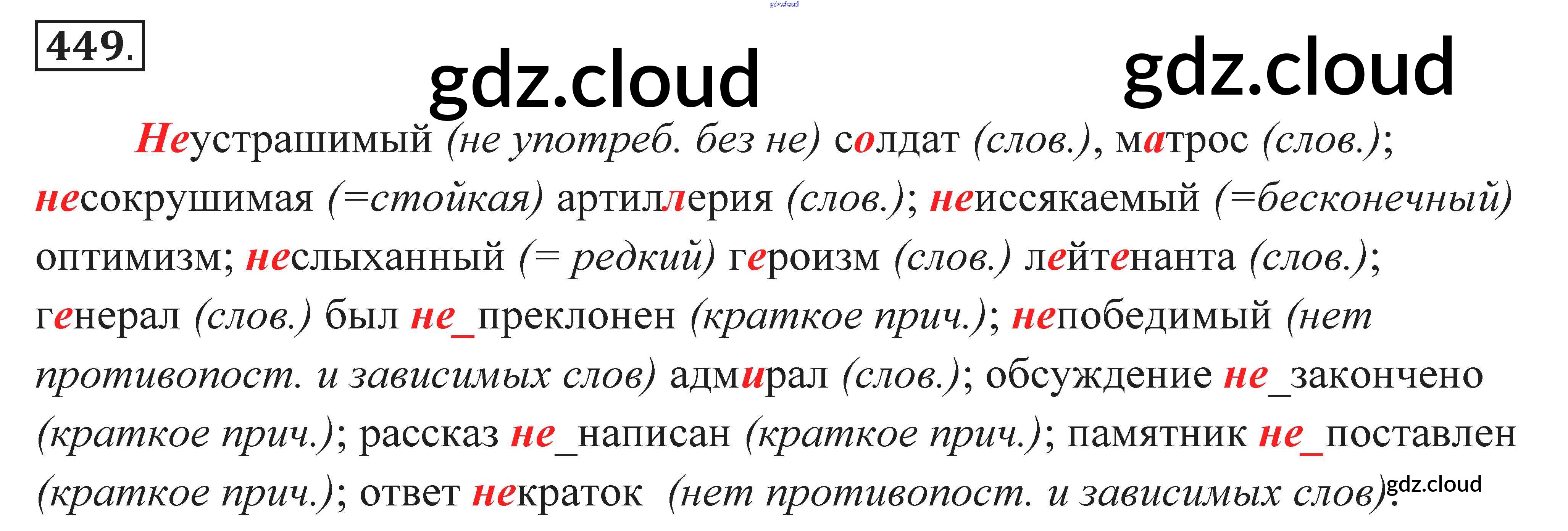 Ответ на задание 449 Практика Русский язык за 7 (седьмой) класс Пименова, Еремеева, Купалова 2016 ФГОС онлайн и без номера телефона.