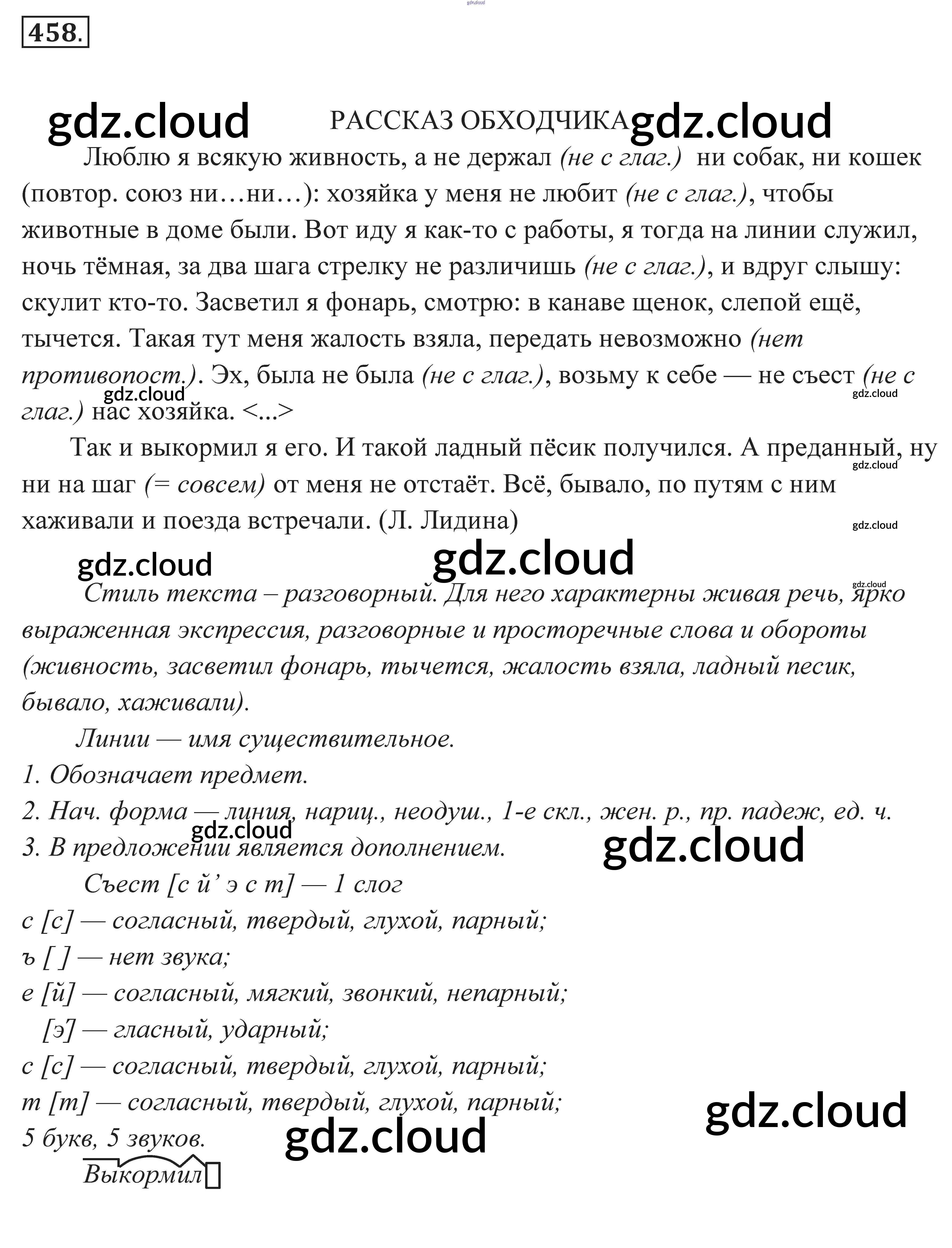 Ответ на задание 458 Практика Русский язык за 7 (седьмой) класс Пименова, Еремеева, Купалова 2016 ФГОС онлайн и без номера телефона.