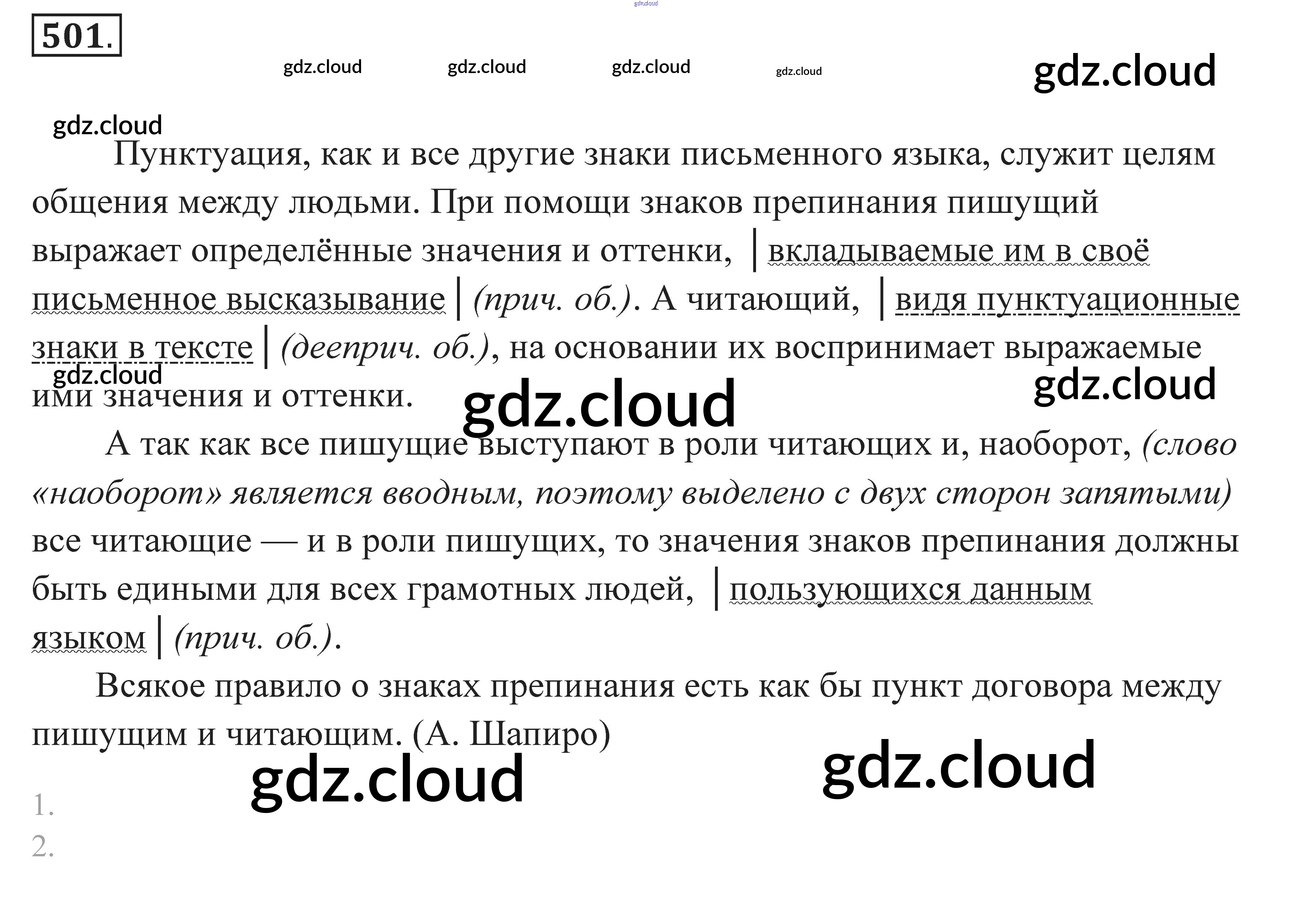 Ответ на задание 501 Практика Русский язык за 7 (седьмой) класс Пименова, Еремеева, Купалова 2016 ФГОС онлайн и без номера телефона.