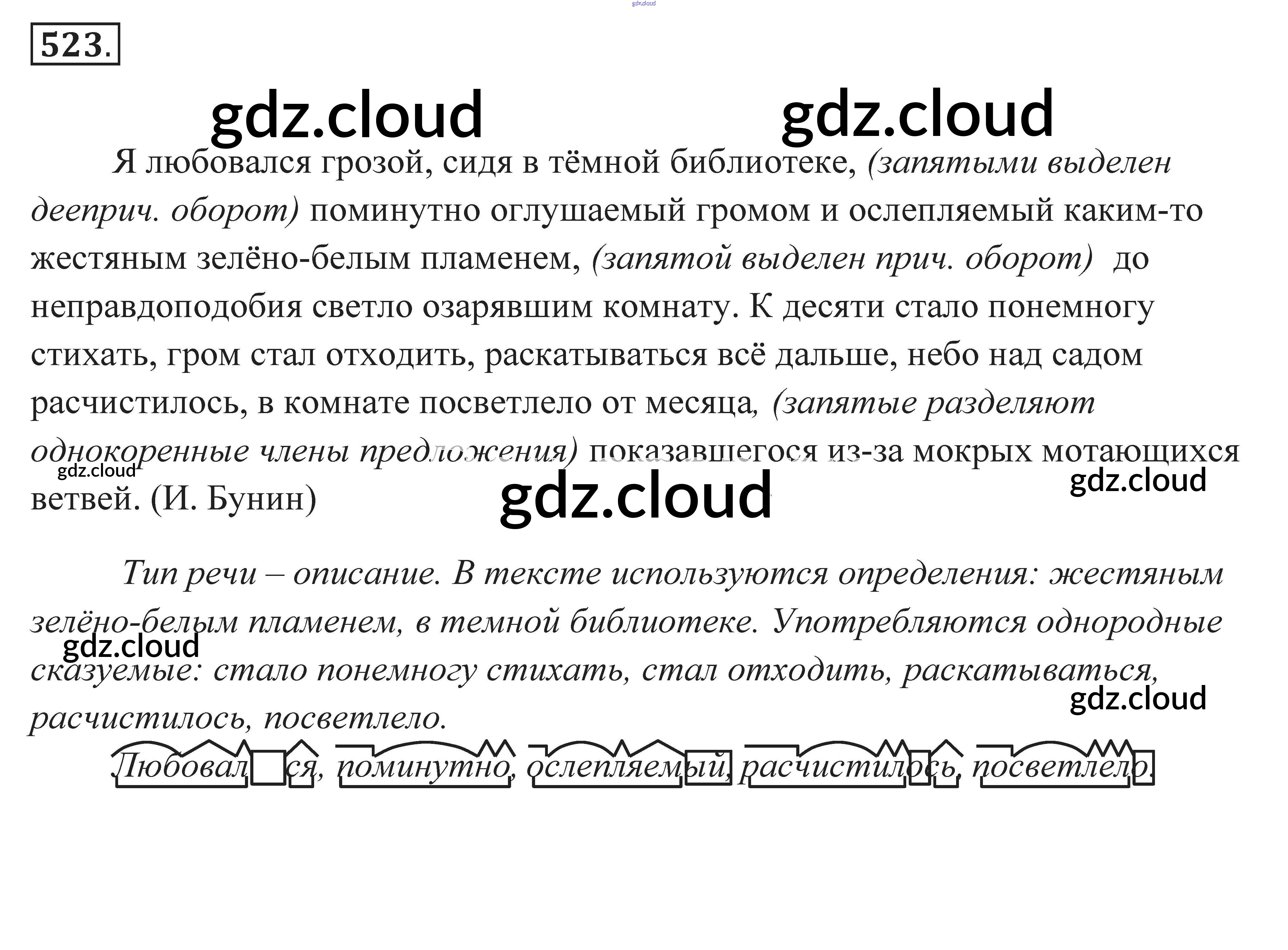 Ответ на задание 523 Практика Русский язык за 7 (седьмой) класс Пименова, Еремеева, Купалова 2016 ФГОС онлайн и без номера телефона.