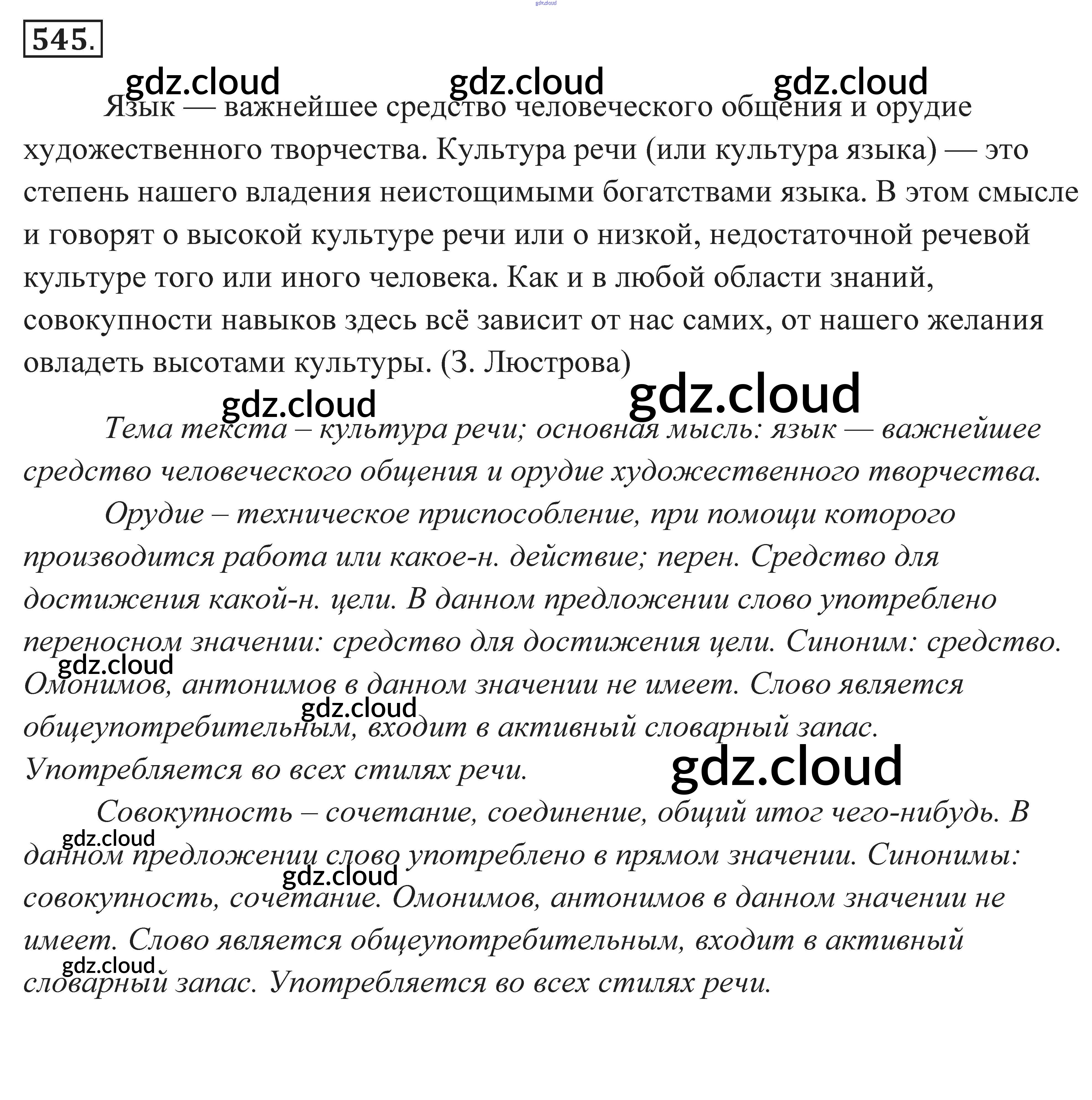 Ответ на задание 545 Практика Русский язык за 7 (седьмой) класс Пименова, Еремеева, Купалова 2016 ФГОС онлайн и без номера телефона.
