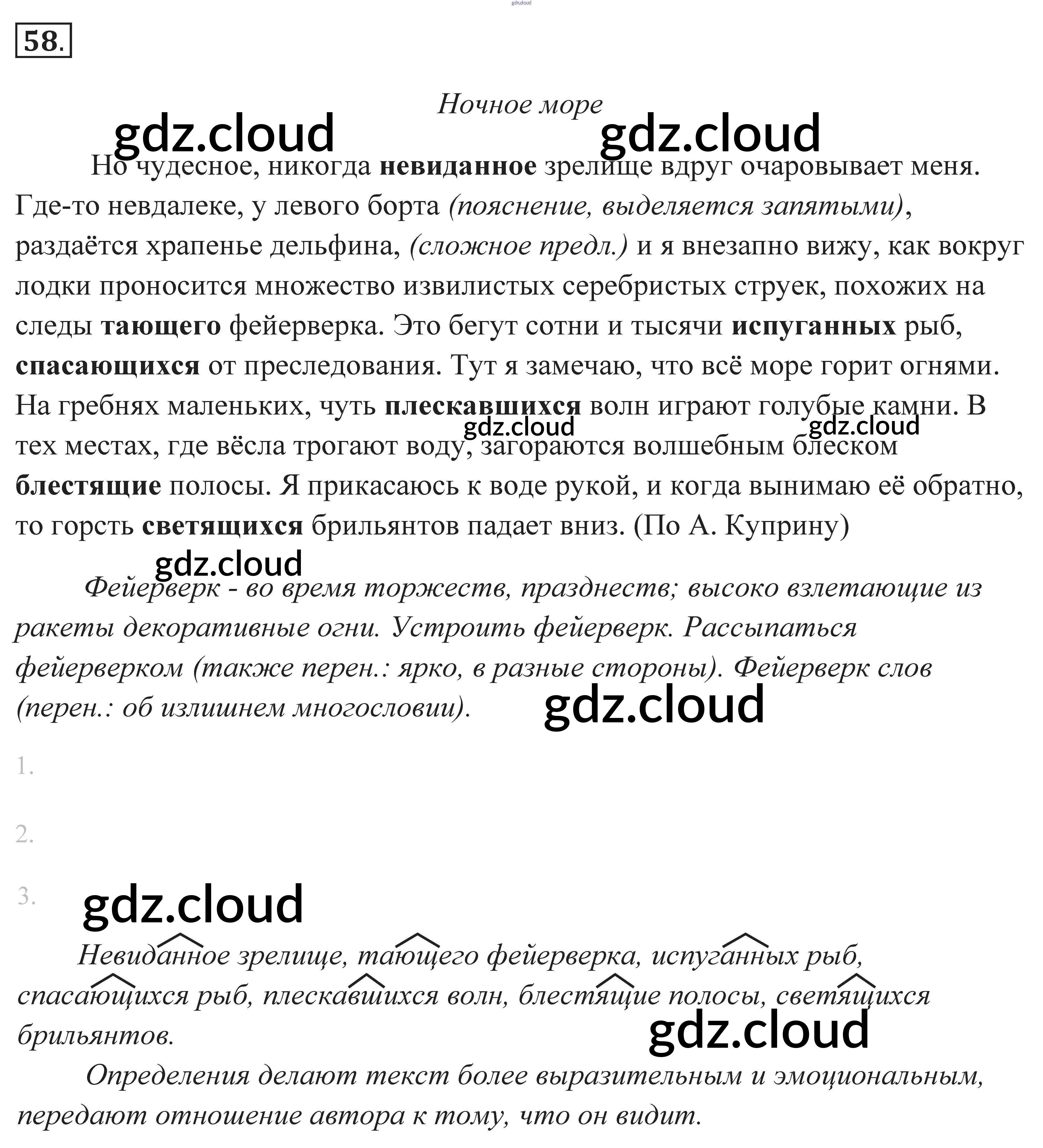 Ответ на задание 58 Практика Русский язык за 7 (седьмой) класс Пименова, Еремеева, Купалова 2016 ФГОС онлайн и без номера телефона.