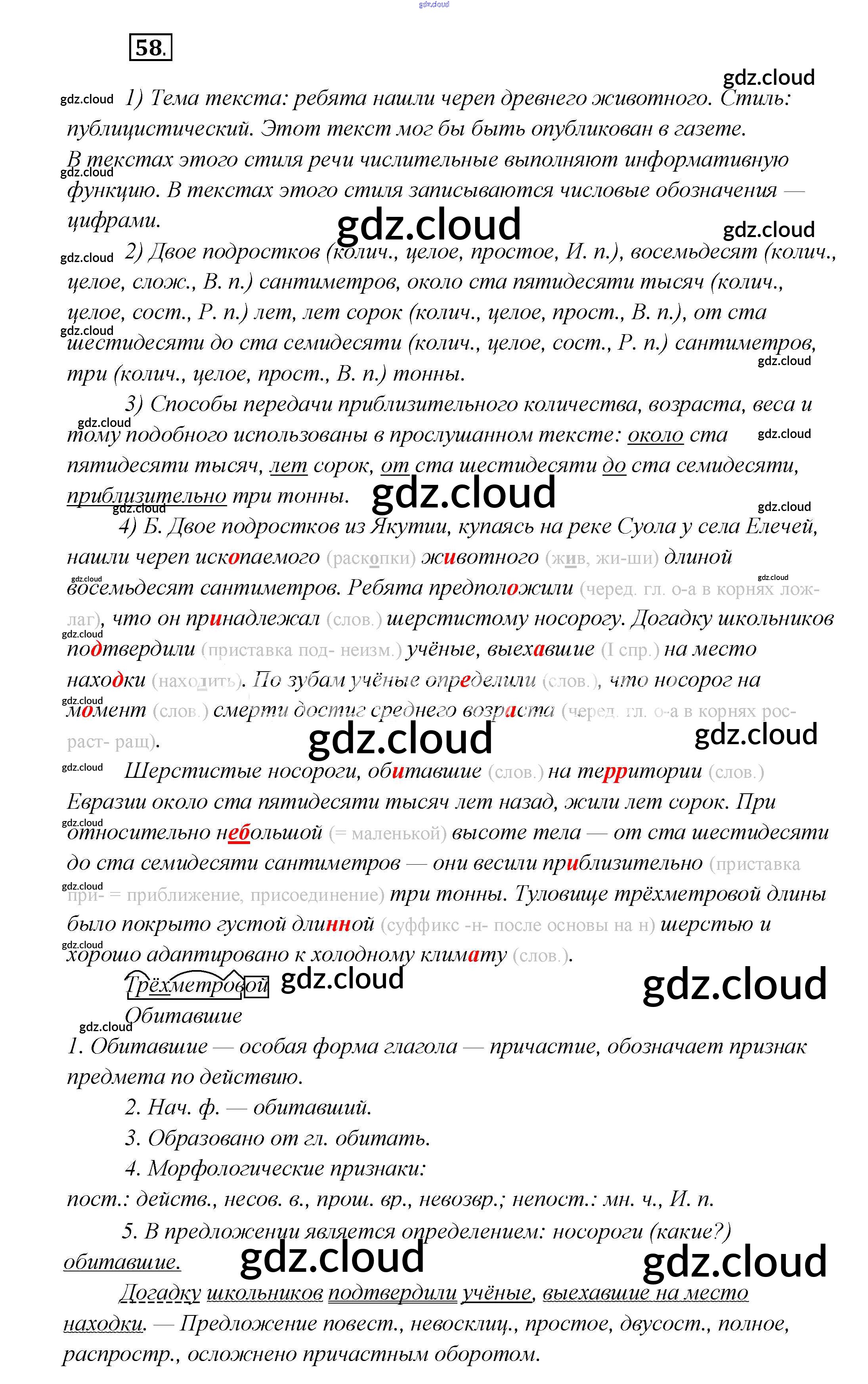 Ответ на задание 58 Учебник Русский язык за 7 (седьмой) класс Шмелёв, Флоренская, Савчук, Шмелёва Алгоритм успеха 2016 ФГОС онлайн и без номера телефона.