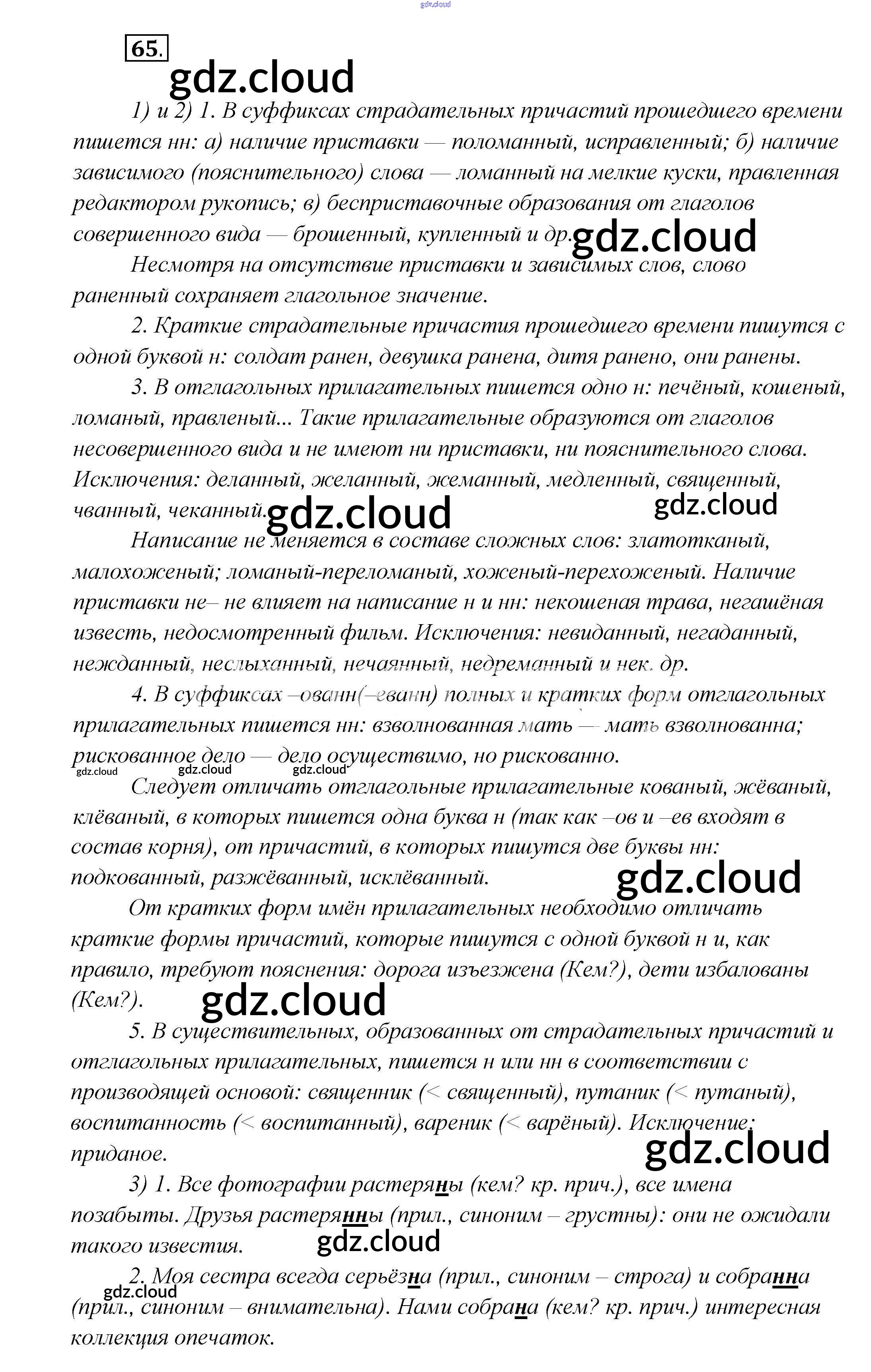 Ответ на задание 65 Учебник Русский язык за 7 (седьмой) класс Шмелёв, Флоренская, Савчук, Шмелёва Алгоритм успеха 2016 ФГОС онлайн и без номера телефона.