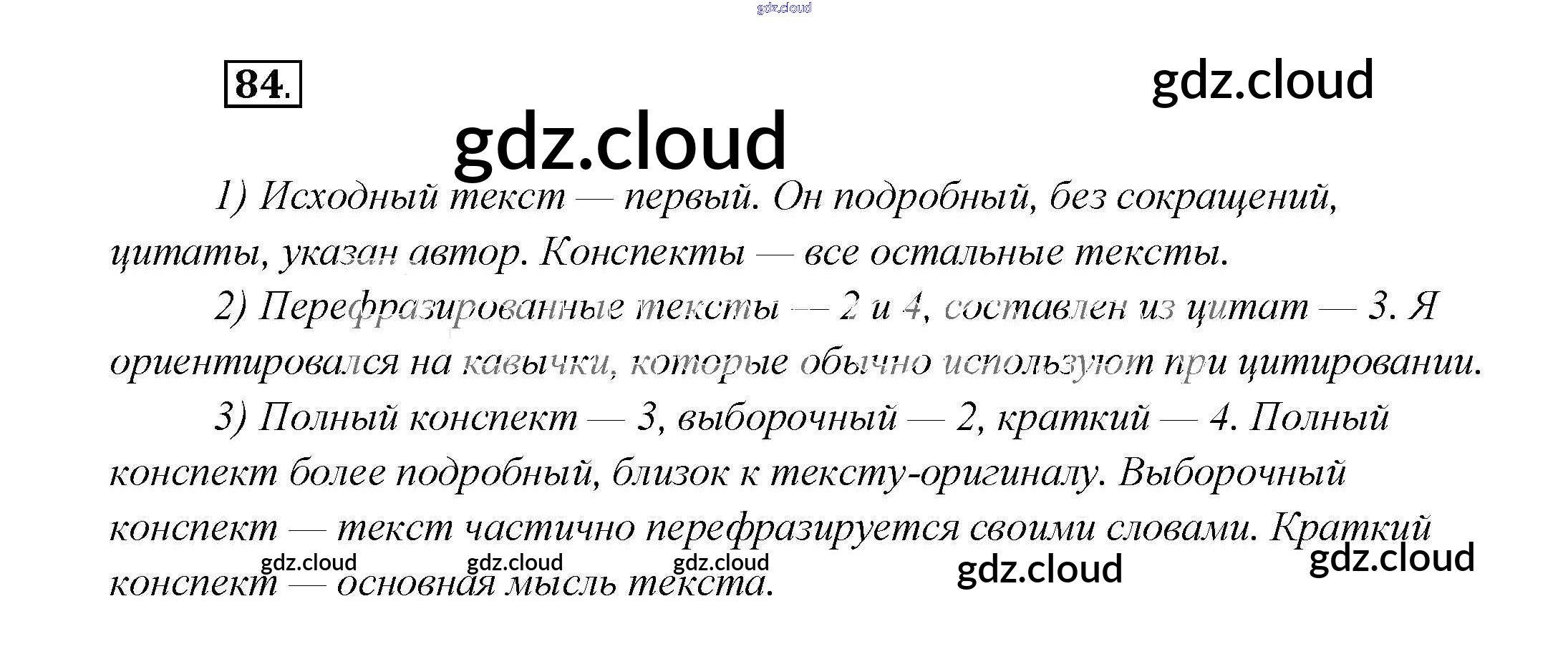 Ответ на задание 84 Учебник Русский язык за 7 (седьмой) класс Шмелёв, Флоренская, Савчук, Шмелёва Алгоритм успеха 2016 ФГОС онлайн и без номера телефона.