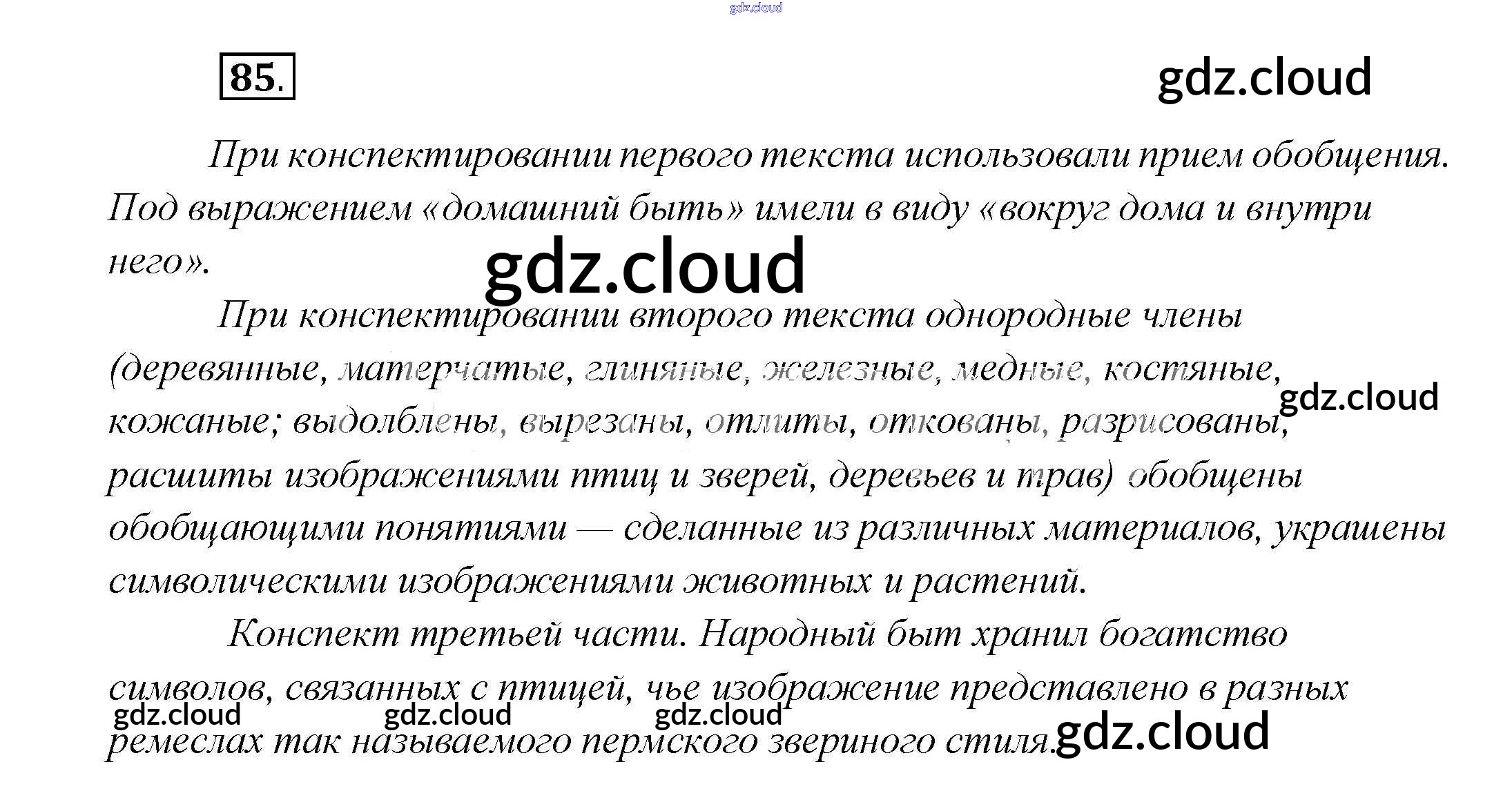 Ответ на задание 85 Учебник Русский язык за 7 (седьмой) класс Шмелёв, Флоренская, Савчук, Шмелёва Алгоритм успеха 2016 ФГОС онлайн и без номера телефона.