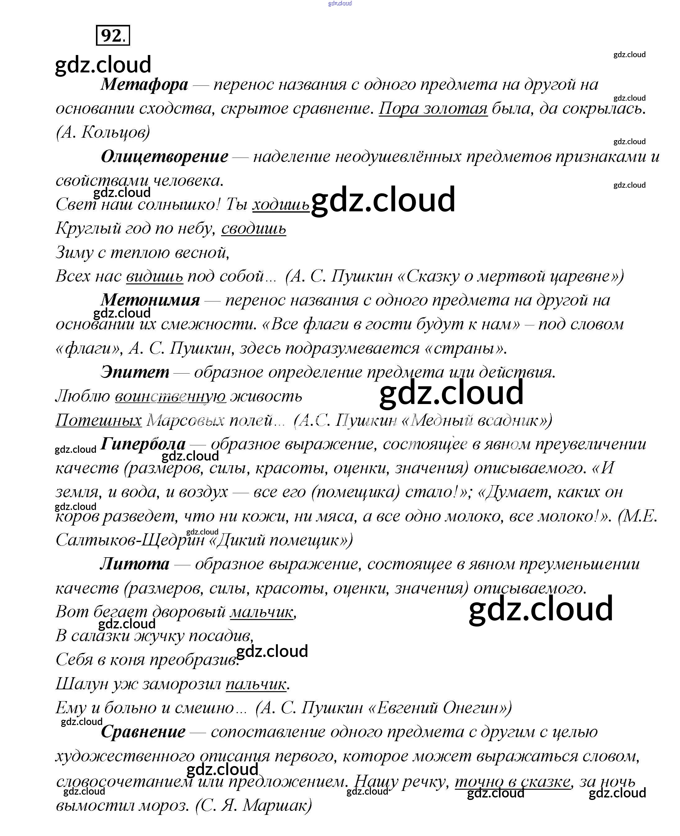 Ответ на задание 92 Учебник Русский язык за 7 (седьмой) класс Шмелёв, Флоренская, Савчук, Шмелёва Алгоритм успеха 2016 ФГОС онлайн и без номера телефона.