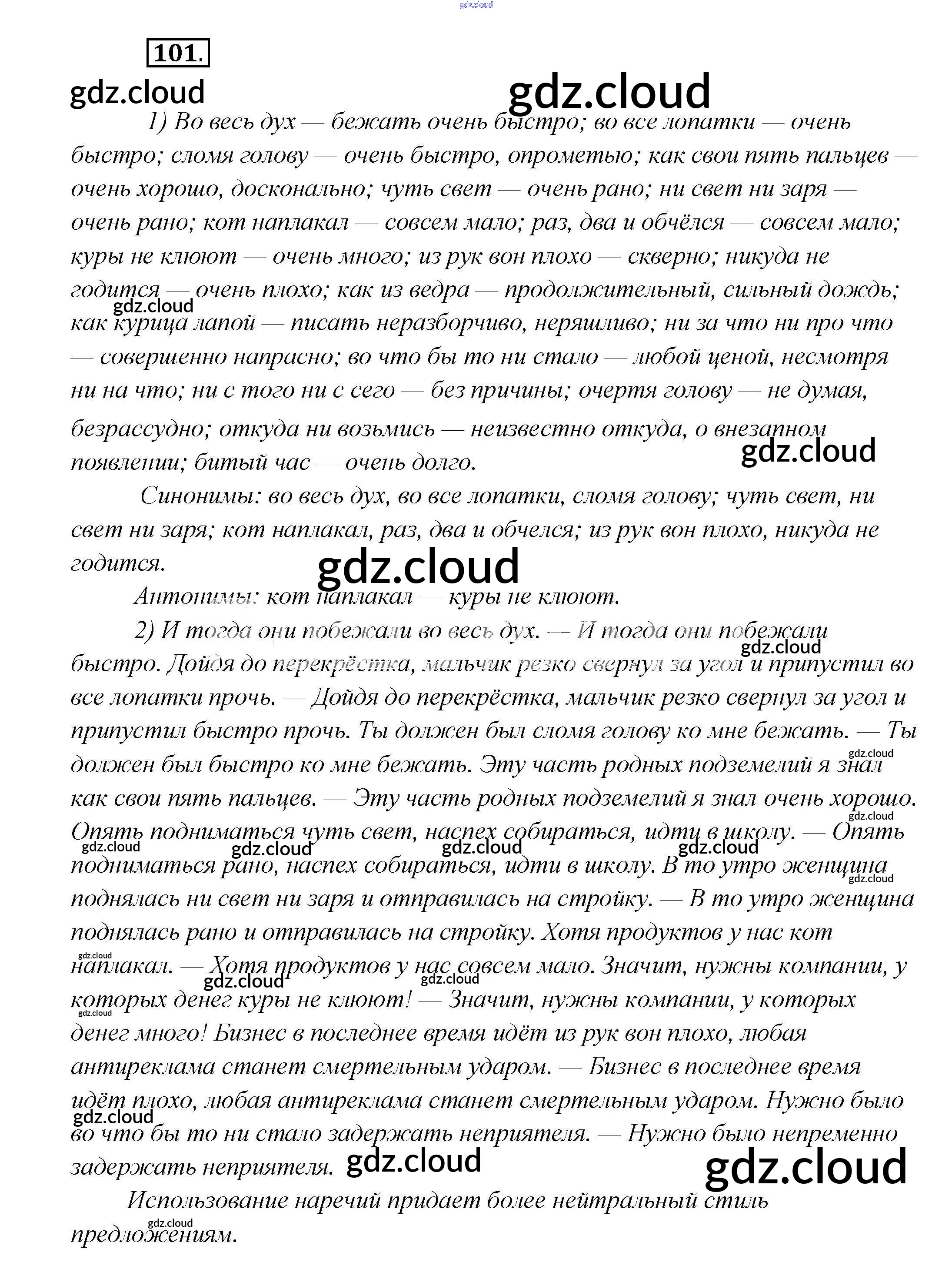 Ответ на задание 101 Учебник Русский язык за 7 (седьмой) класс Шмелёв, Флоренская, Савчук, Шмелёва Алгоритм успеха 2016 ФГОС онлайн и без номера телефона.