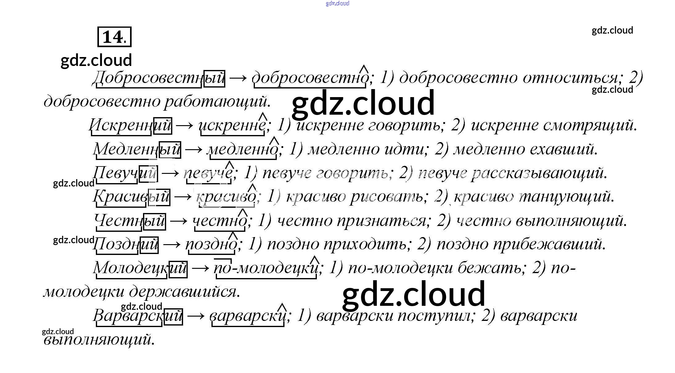Ответ на задание 14 Учебник Русский язык за 7 (седьмой) класс Шмелёв, Флоренская, Савчук, Шмелёва Алгоритм успеха 2016 ФГОС онлайн и без номера телефона.
