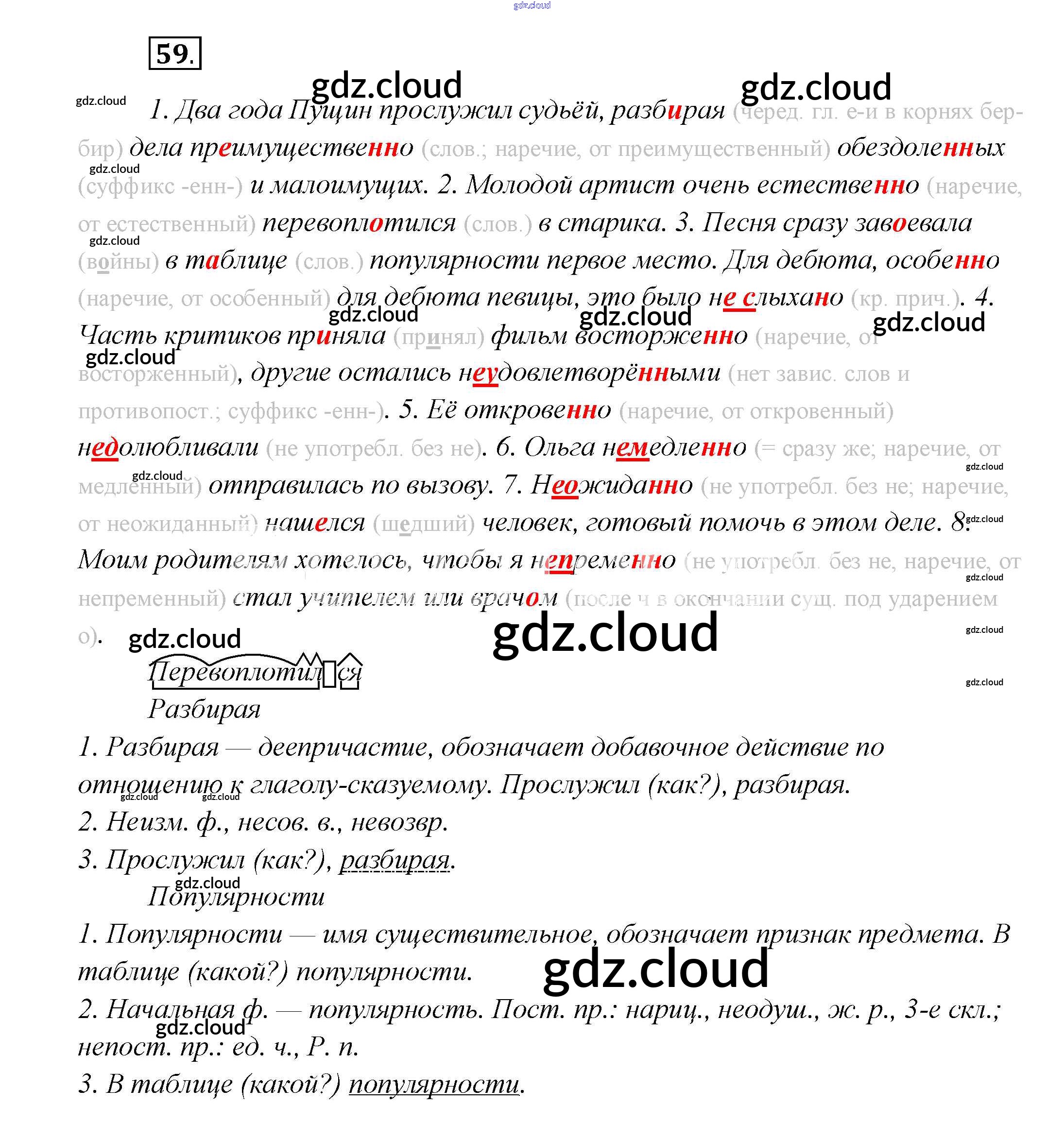 Ответ на задание 59 Учебник Русский язык за 7 (седьмой) класс Шмелёв, Флоренская, Савчук, Шмелёва Алгоритм успеха 2016 ФГОС онлайн и без номера телефона.