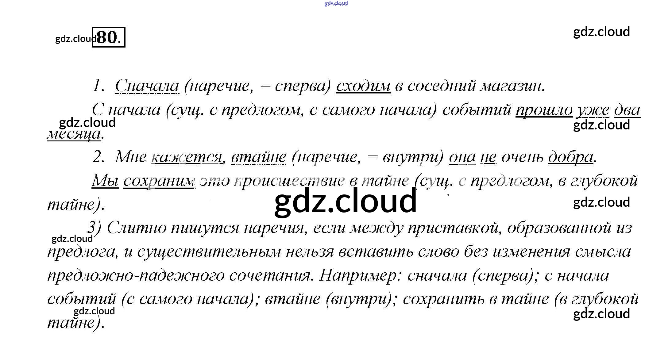 Ответ на задание 80 Учебник Русский язык за 7 (седьмой) класс Шмелёв, Флоренская, Савчук, Шмелёва Алгоритм успеха 2016 ФГОС онлайн и без номера телефона.