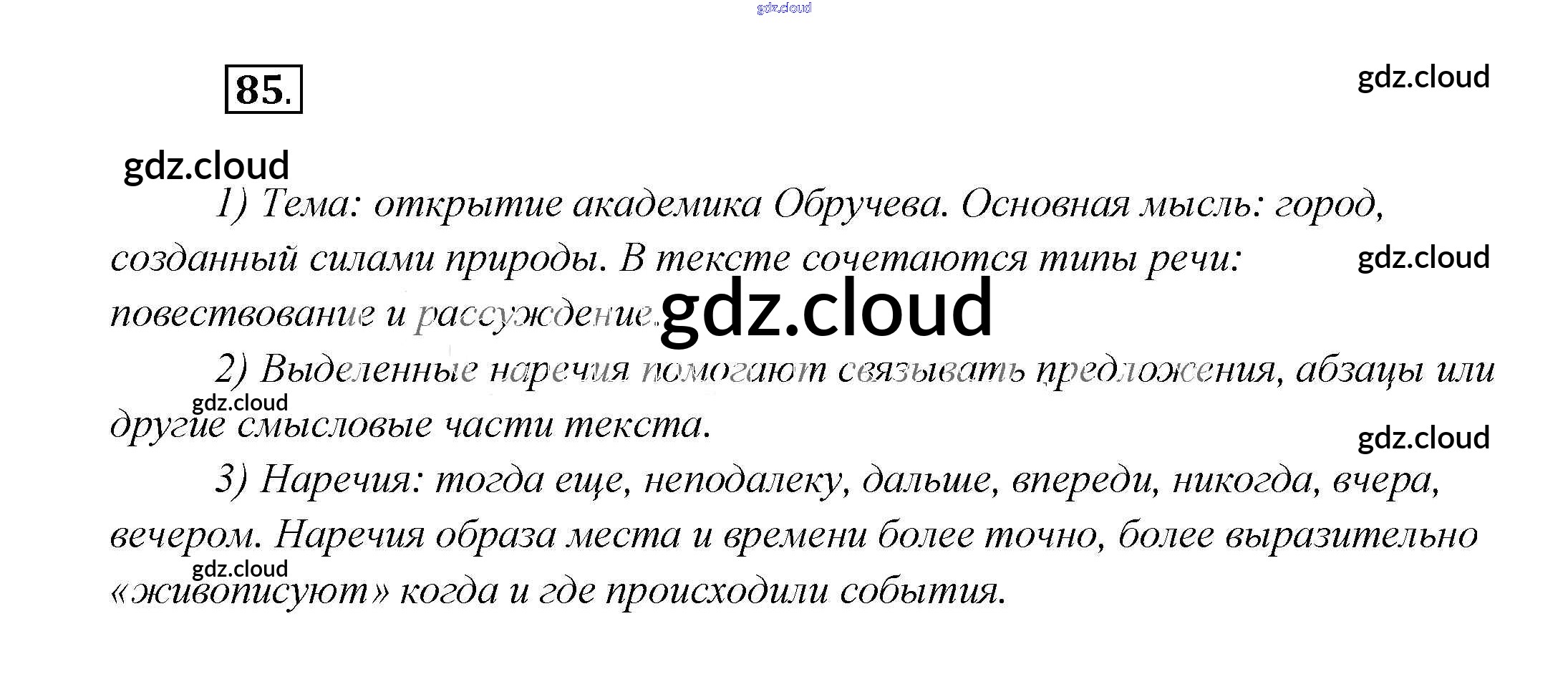 Ответ на задание 85 Учебник Русский язык за 7 (седьмой) класс Шмелёв, Флоренская, Савчук, Шмелёва Алгоритм успеха 2016 ФГОС онлайн и без номера телефона.