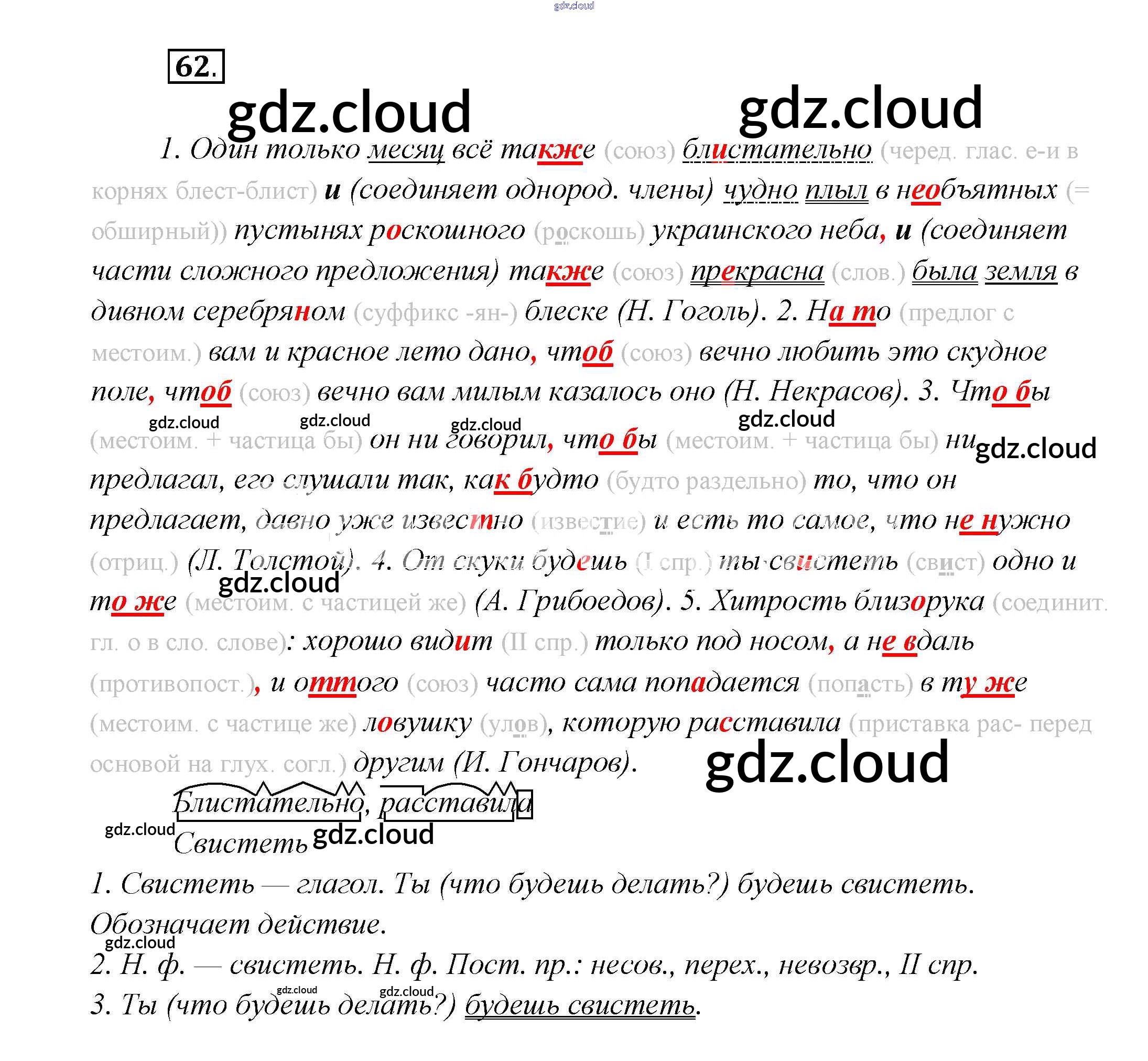 Ответ на задание 62 Учебник Русский язык за 7 (седьмой) класс Шмелёв, Флоренская, Савчук, Шмелёва Алгоритм успеха 2016 ФГОС онлайн и без номера телефона.