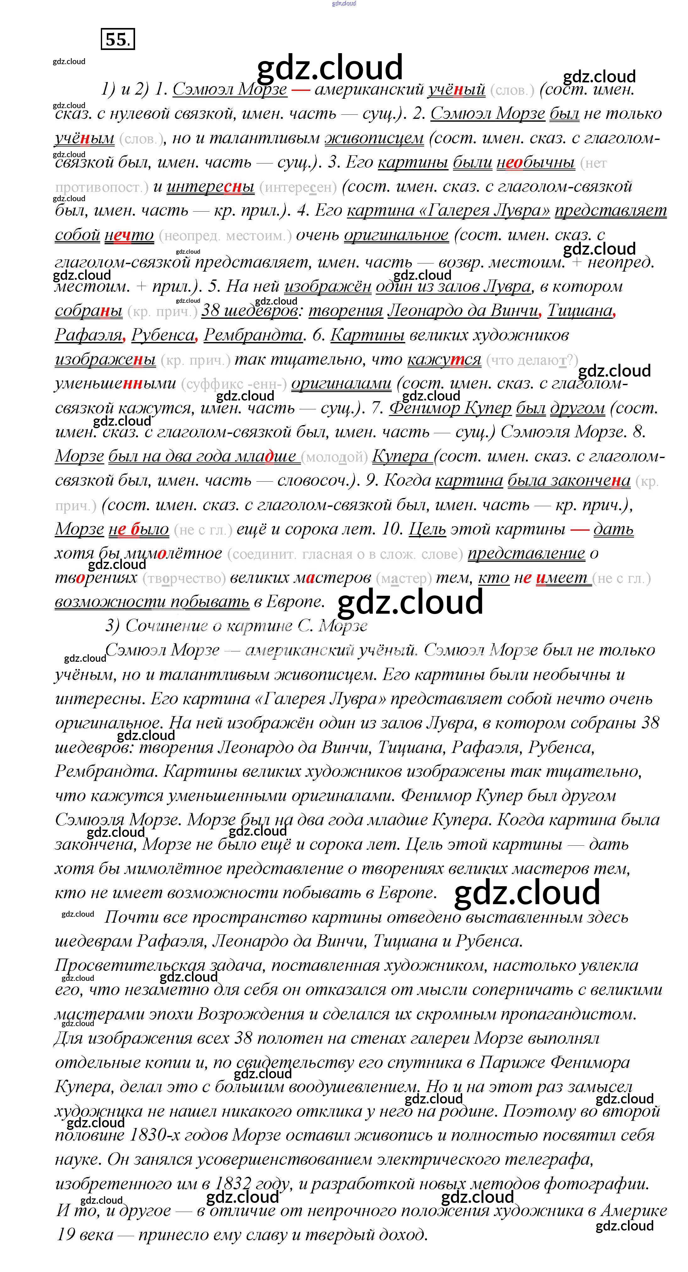 Ответ на задание 55 Учебник Русский язык за 7 (седьмой) класс Шмелёв, Флоренская, Савчук, Шмелёва Алгоритм успеха 2016 ФГОС онлайн и без номера телефона.