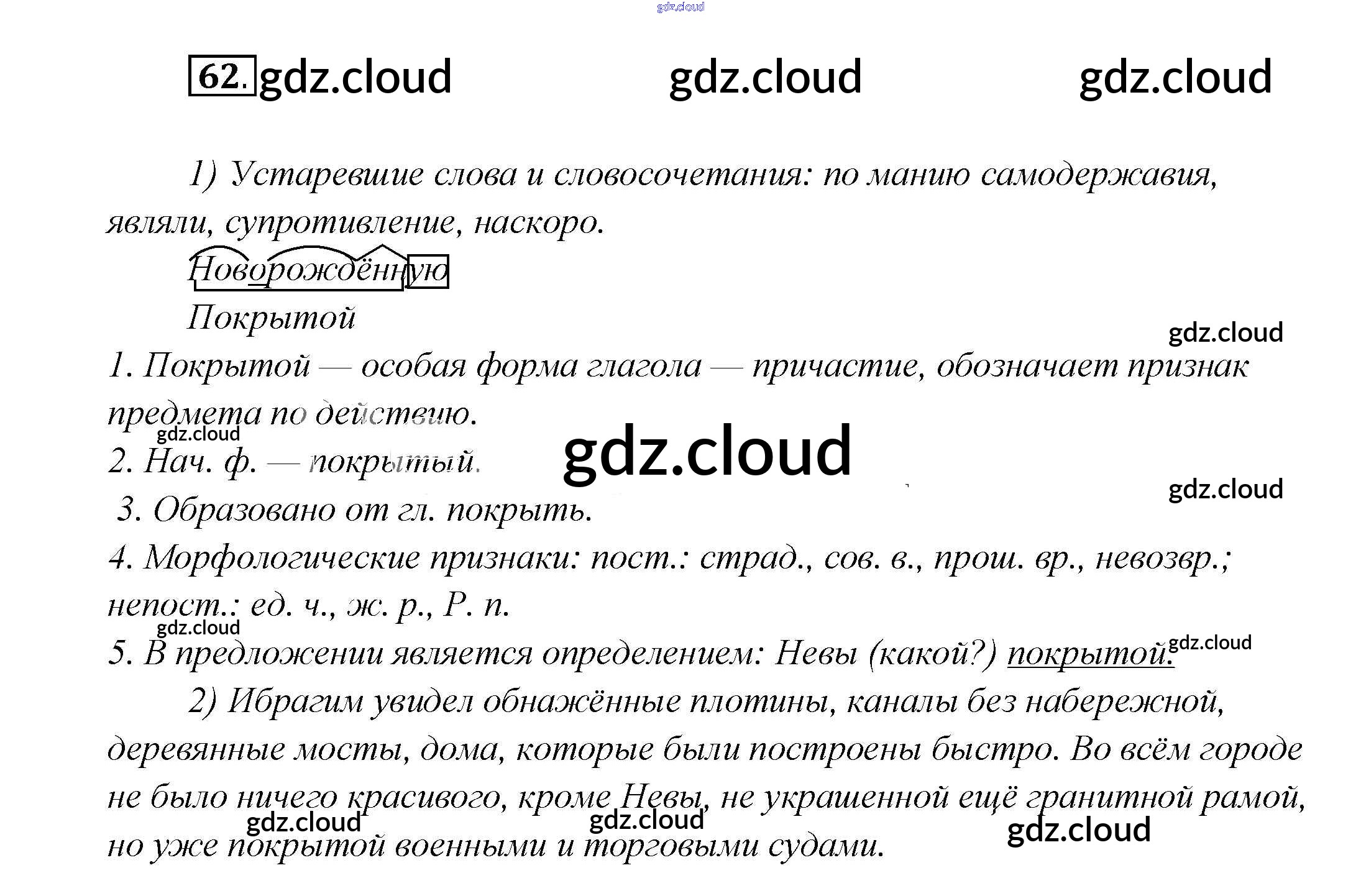 Ответ на задание 62 Учебник Русский язык за 7 (седьмой) класс Шмелёв, Флоренская, Савчук, Шмелёва Алгоритм успеха 2016 ФГОС онлайн и без номера телефона.