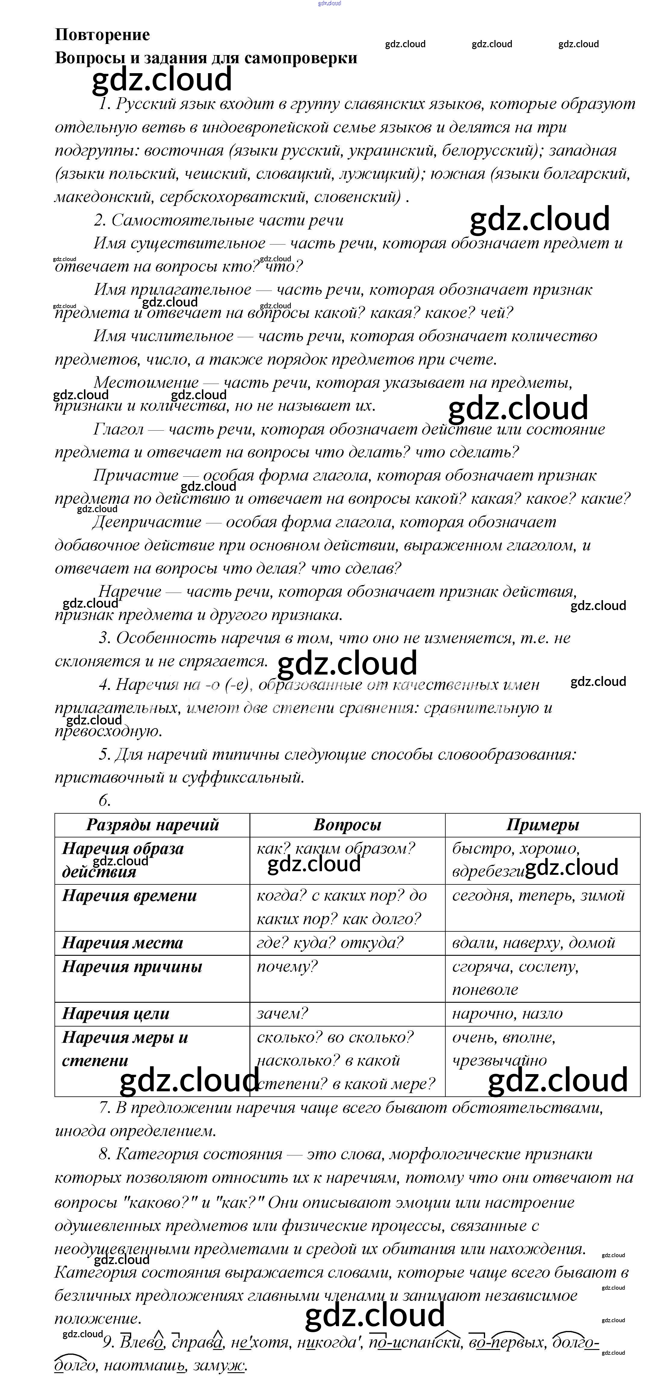 Повторение и вопросы для самопроверки Ответы к главе 7 по Русскому языку 7 класс Учебник Шмелёв Алгоритм успеха Вентана-граф