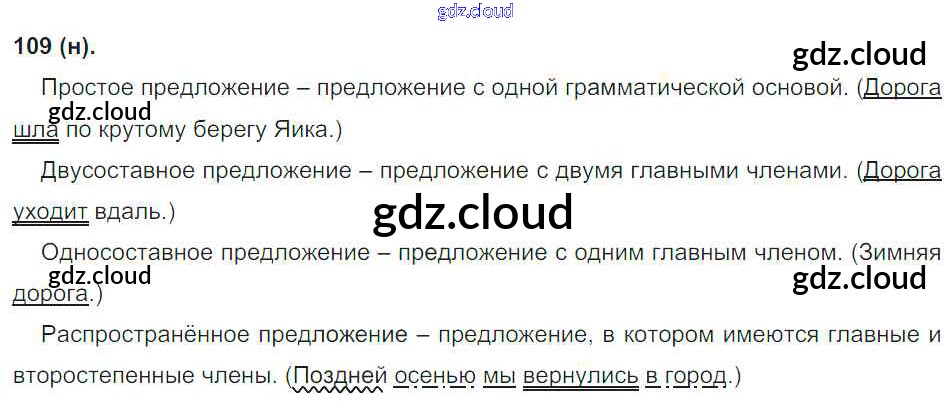 Ответ на задание 109 Учебник Русский язык за 8 (восьмой) класс Бархударов, Крючков, Максимов 2018 ФГОС онлайн и без номера телефона.