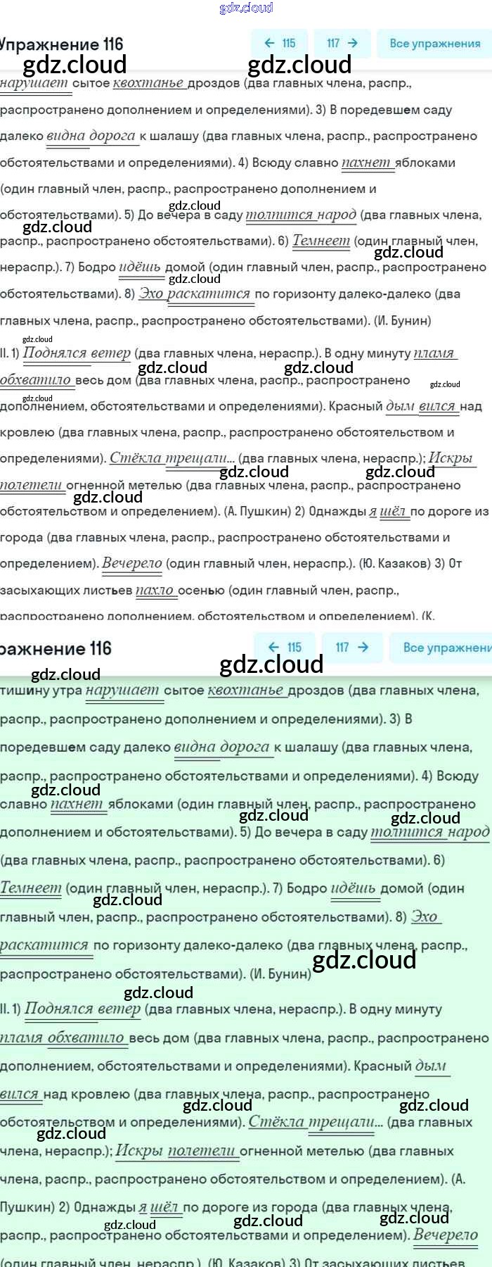 Ответ на задание 116 Учебник Русский язык за 8 (восьмой) класс Бархударов, Крючков, Максимов 2018